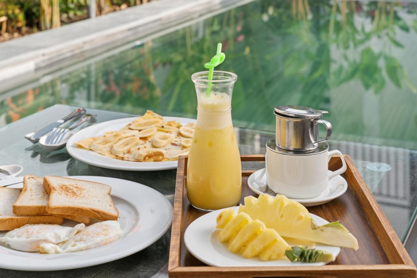 The breakfast offers continental, American or Asian options.